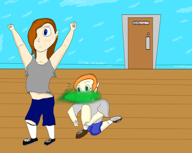 Spar was very panicked. he wriggled like a worm. but can't escape the pincer armpit of wrestling athlete, Ira. Spar felt his wet and sticky face, and could only smell the scent of Ira's armpits which smelled like she hadn't showered in two days