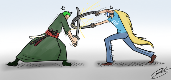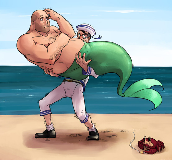 I really just wanted an excuse to draw Tony Tony Chopper as the Medic. Deciding whether he should be healing Franky or Luffy was a pain, but I went with the latter because he has a gatling attack. And I didn't feel like spending an hour hunting down good reference pictures of Franky.Even though Heavy/Medic is my favoritest thing ever, I don't think I'd ship these two.
