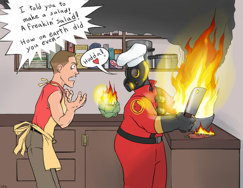 I mostly just wanted to draw Chopper as a Medic, but figured the joke wouldn't be complete if he didn't have a Heavy. I should have thought of the balloon thing... XD