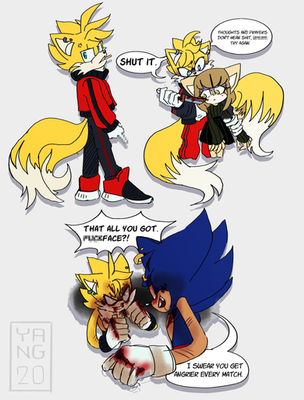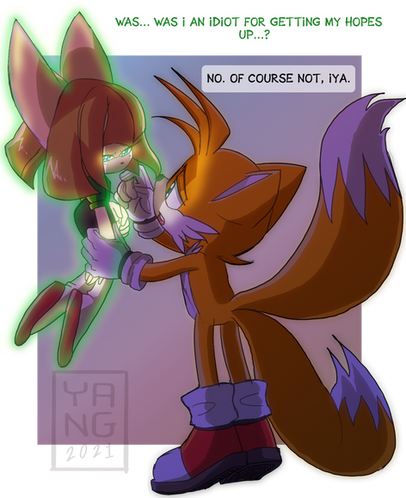 iya lost her resolve in the scuffle with tails and can't bring herself to hurt him any further, especially not with the kindness he showed to her, but she has to call an escape away from him before he really sees the damage his warmth has done to the pillars of her worldview.