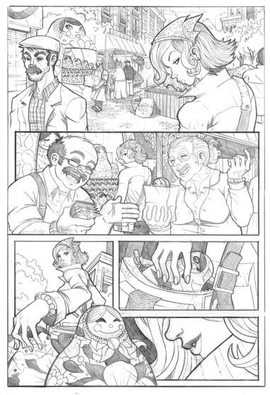 lol of all the things to steal! ^-^ No but seriously i live the perspective in the panel where she actually nabs it. I think the character feels a little stiff because her head doesn't really move on this page.