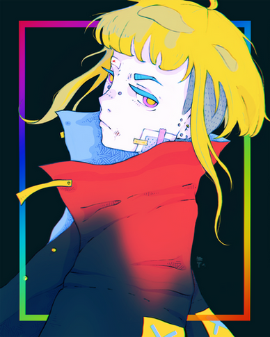 #anime #girl #oc #art #animedrawing #animegirl #animestyle #artstyle #chains #coat #colorful #drawings #hood #hoodie #katana #sword #techwear