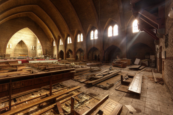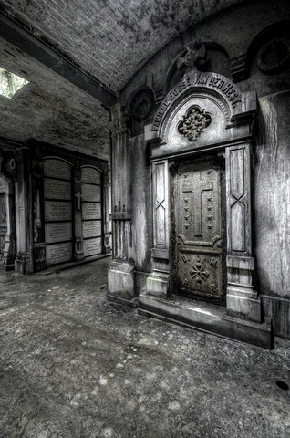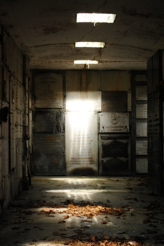 Urbex: Exploration of an old abandoned crypt under an old Belgian graveyard.-----