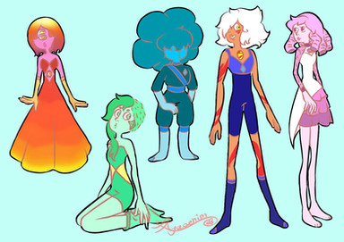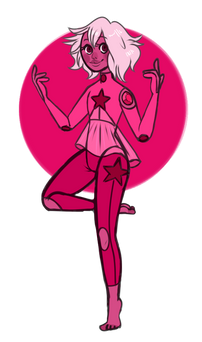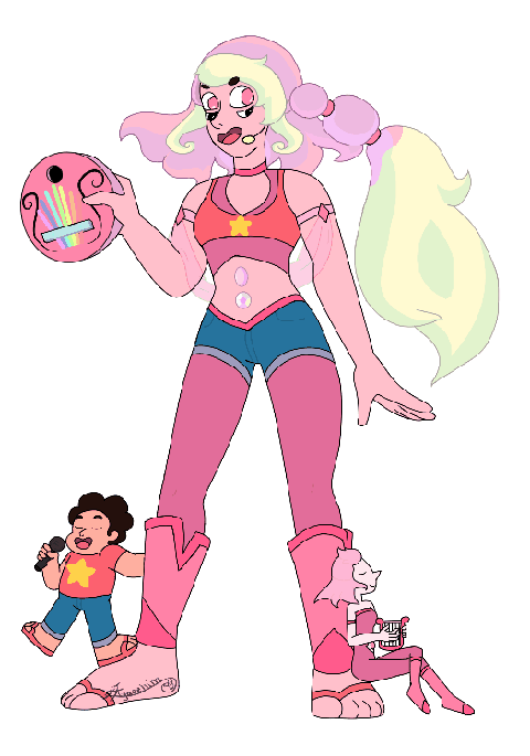 this is my gemsona pink pearl, pearl crated of pink diamondshe can fly, she have a harp, she have healing power and she can resolve in tree pearl, every pearl with a power