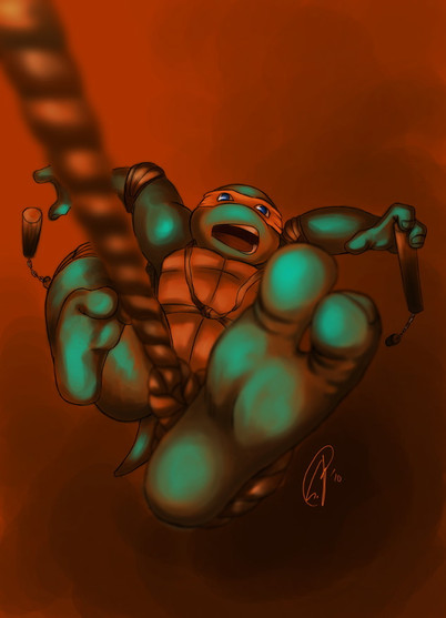 Raph's turn! I wanted a bit of variety so I used a net instead of ropes... but now I'm wondering if it made Raph look stupid >_<Sorry, hahaha. *hides*