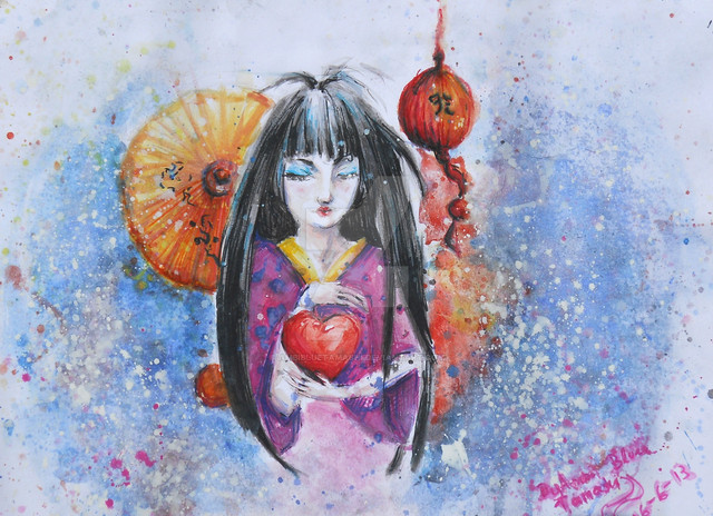 Draw one eye on the daruma to make a wish. When your wish comes true, give him his other eye.I almost never smile on my self-portraits.