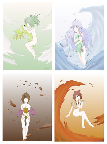 We haven't had any internet in the past 3 days, so out of boredom I decided to check out my old pieces and came across one that was one of my favorites when I was a bit younger. It's a pic of four characters of mine from an original story I used to work on. Looking at it made me cringe in shame at how terribad my proportions were, ahahaha.So... I decided to try redoing the picture! Not a big fancy redo, but just a quick sketchy one to see how it would have looked if I drew a little more properly back then! I also tried to keep as much of the old style as possible, which is why they don't really look the way I normally draw people nowadays.