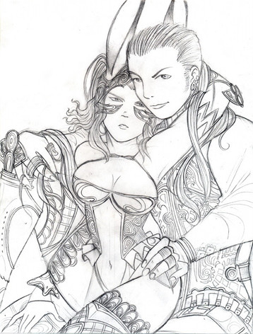 I finally got around to coloring it! Actually, I finished coloring Fran a couple weeks ago, but I just got waaaaaaay too lazy to color Balthier! I swear, FF costumes get more and more insane to draw and color!After working on three commissions I decided to take a break and draw something for myself. Nowadays I can't play FFXII without fantasizing about grabbing Fran's hot ass or rabidly tearing off Balthier's belt. I swear, these two. Hot.