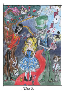 Gotta say - your mad hatter is kinda sezzzy! Mmm... Teeheehee! I liek the over all composition... nice colors, exceptional detail, and wonderful characters with all kinds of personality! Gorgeous job!!!