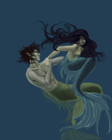 The thumbnail makes it look like she's pulling him down. Enlarging the image makes it look like she's catching him as he sinks. Seeing her face close up makes a big difference.