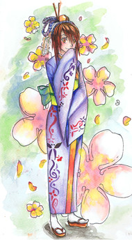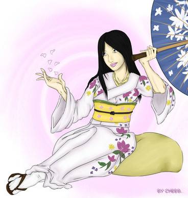 Β This Yukata was converted into a Kimono and featured in this image by request of the commissioner of your piece.Β