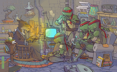 Well, among the four, Leo's the one who could actually sit still for long periods of time. He does meditate regularly, after all! But he has to keep an eye on his brothers to make sure the Raph doesn't end up killing Mike