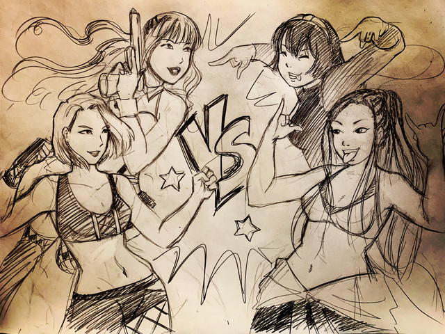 I did fix Yukie's face a bit to match Yoko's better, though. And I had to paint bangs on them