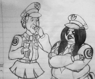 I meant the cops. Β I know tattoos are frowned upon over there. I thought they might have expressed disapproval when they examined you.Β