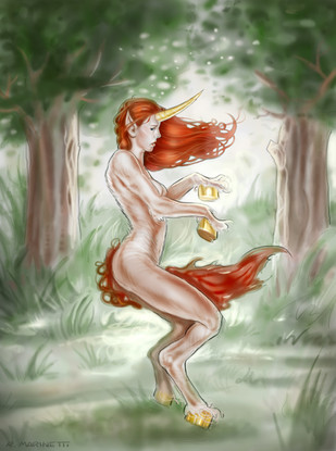 She's close in looks to a D&D character I played for over a year - she's a half-unicorn, half-elf. Much fun, although my gal got to keep her hands.