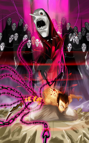 "Ya gotta listen ta me, and listen good, a'right?" he said sternly, giving her a glare of utmost seriousness. He slashed at his wrists with the blade of his axe and thick blood came flowing out. With a thick finger he picked some up and painted a stripe of it across his eyes, then did the same to hers. "I be doin' dis wit' no proper protection other dan me own blood. No charms, no talismans, nothin'! Without da proper materials I can't be controllin' dese spirits properly. But dis be our only chance."