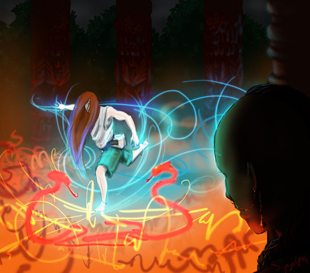 Just something I have in the works! It's still just a rough sketch with rough colors as of nowI wanted to hold off on showing Meiles' voodoo magic until I can properly introduce it in the comics, but since I'm going sooo sooo sooooooooo slow in getting those out... well, here's a big jump in the timeline