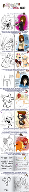Ohohoho! =raevene and I have been tagged by *Pimpypants and *prefight-DONUT to do this super duper aesome meme!!=raevene totally schooled me on this, though. She actually took the trouble to make it look nice and what did I do? I did quick doodles and then played WoW most of the time. I suuuuuuck T_T