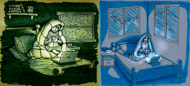 It's that time of year again. It's hot and sunny outside and I want a reminder of colder days. So I made this drawing of someone in the middle of a snowstorm or something. I want to do more intense drawings again, so this was sort of a warm-up (ironically). Hopefully I actually do make more art today.Here's last year's winter-in-summer sketch (which I put way more effort into):