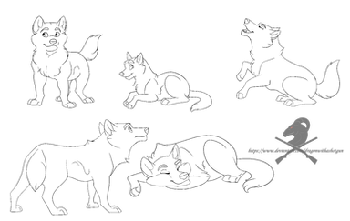 I did one with them all grouped together, and they are also all separate on the side if you want to position them yourself, or if you have a smaller pack. You don't have to use this for a whole wolf pack, if you want to just one or two of the linearts then you can. It is ok to alter the linearts to you liking (drawing different expressions or head hair or longer tails or whatever) BUT do not claim to have drawn the whole thing yourself just because you altered it! that's still called art theft.