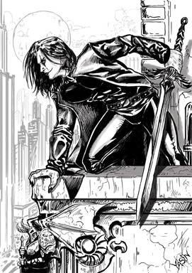 Nice inking, . The blur effect really makes the piece interresting. Good job.