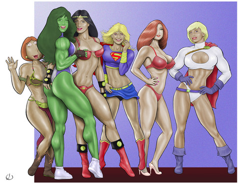 Taking it to the next logical level.All digital, done with lots of references: Famous Jessica R pin-up (one with the mike) for the pose, Gemma Atkinson for the bra (and general inspiration), Jessica Biel for the face and lotsa FFBs for muscle reference. I wanted that one to be DEAD ON.