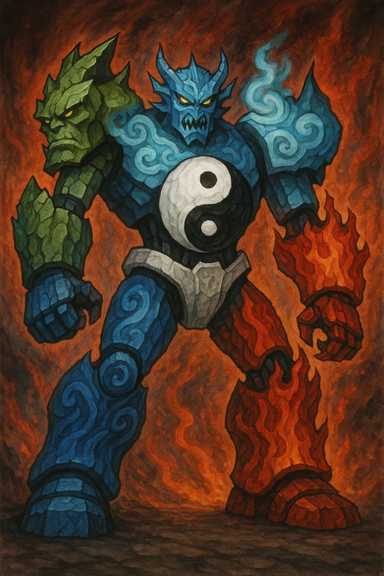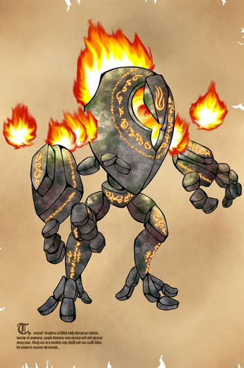 I like this. i dont like how the elements are fruits, but i do like the elemental guy. he looks more like he is built from fire, water, time, earth, and nature really, not fruit.