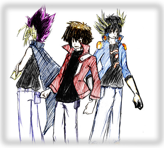 Very cool. Yusei,Yami and Judai look so awesome. I luv your coloring !