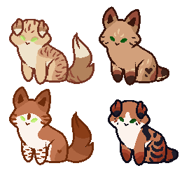 Kits B, C, and D are open for offers until the 8th, and if they don't find other homes before then, I will keep them. I'll probably be picky about where they go, but you can offer art, loners, rogues, kittypets, points... Whatever floats your boat.