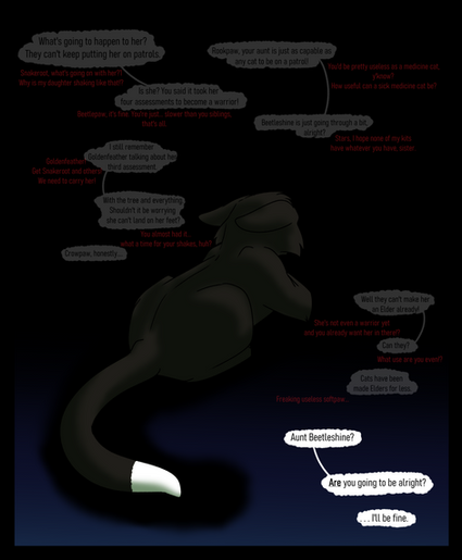 I almost screamed when I saw you had finished this!! Brittlepaw makes me want to wrap her up in a toasty blanket and hide her away from this world, because she is far too precious for it ;___; I hope she finds some peace, because she's flawless just the way she is, even if she doesn't know that now!
