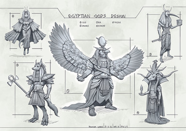 number 10s tail doesn't fit so well with the ancient Egyptian theme, but is otherwise a really nice threatening shape and would cast all kinds of dangerous looking shadows. With that said it looks too huge for number 10s legs to be carrying. It would however maybe fit number 15. If you shortened 15s hair a little and maybe shortened his arms too, just to give them a bit more power (right now they are just sortof hanging like they fell asleep, not very characteristic of a god of death/afterlife).