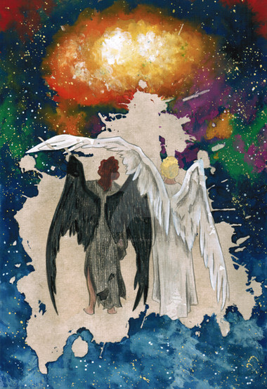 so. I'm a good omens girl. deal with it it.if you look closely at the background. you can see a heart around Crowley and Aziraphale .