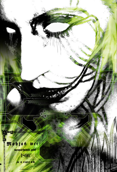 I liked the position of the face (where do you found it?), and the contrast of the black n' whit with the red blood in the mouth.. to it