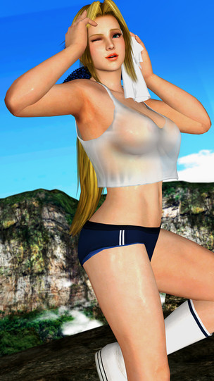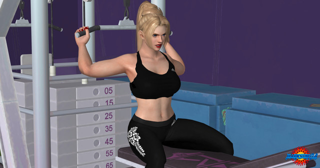#3d #blonde #deadoralive #exercise #ponytail #rachel #sexy #shortpants #sportsbra #woman #workout #xps #xnalara #outside