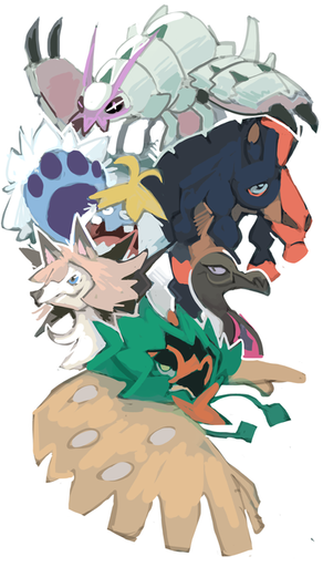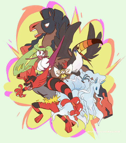 doodle of almost the whole Team ppfff i couldn't get myself to make decidueye look right :'>