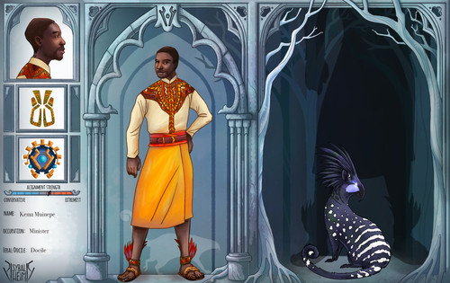 Her sybal form is my adaptation of a jackal kind of spliced with an okapi. Hence the feral aspects along with the over elongated limbs and the markings.