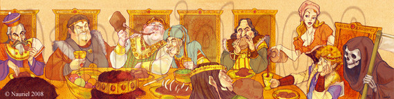 This is way too thought out, but I like how you put Death (he doesn't like to pose!) to the side, and Vetinari (Even HE knows how important he is) in the middle, without making him flashy (assassin school). ....like I said, I'm thinking too much about the characters.