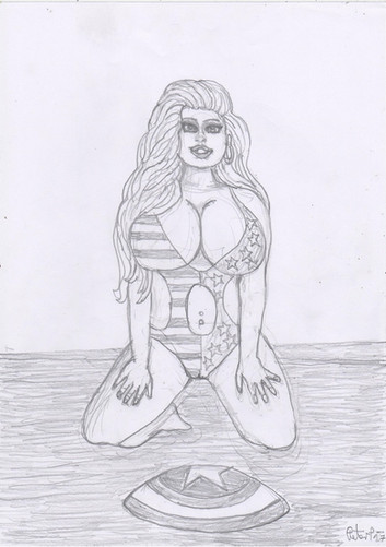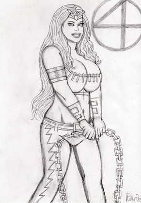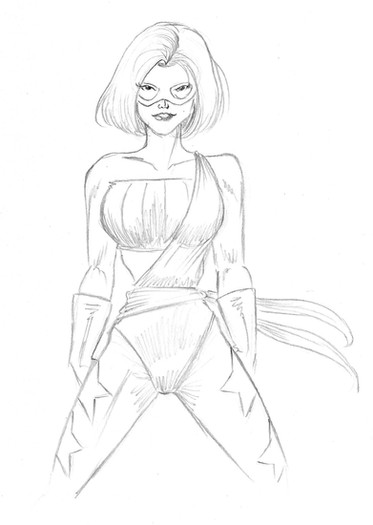 This drawing was suggested by deviantart pal MarkFanboy and represents my version of his original character called Red. She is the leader of a special superheroine group.Expect to see my versions of her partners Blue and White in next few days.