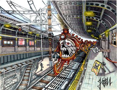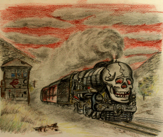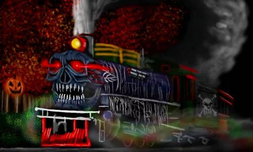 Oohh that looks so cool! I can never draw anything with wheels and an engine. This reminds me of the ghost train off Final Fantasy 6!