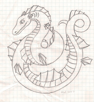 (2011 October) A bad photo of an unfinished pattern of a Chinese dragon I'm trying to make. It's posing me a lot of problems that I don't know how to get around yet, the amateur that I am. I can't get the legs to work out for real... I just don't know how to get it to work when I actually sew it.I want the legs to attach to the body part at the top directly, not having legs that stick out on the top, but that just doesn't work when I think of how to sew it. That forces me to make a lot of little parts to attach to the body that'll make the leg stick out on the top like I don't want it to. That I can get to work, I think, but it will be one hell of a problem to sew.