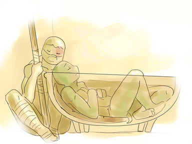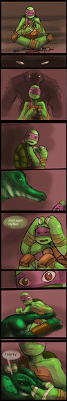 eso digo, en slumber torture, a Mikey se le infesta el brazo o algo asΓ y Raph se lo corta