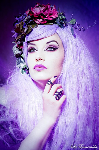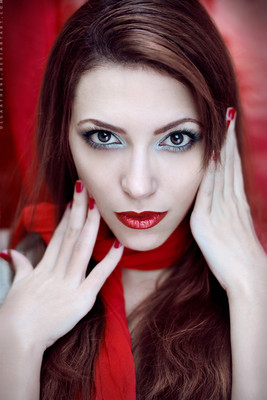 What a beautiful portrait!Β I love the color pallet.Β I like how the red of the ring, necklace, nails and lips not only tie those elements together, but sill stand out against the overall violet-red of the composition.Β Aside from that, this is nice usage of bokeh, and I like the rim light in her hair.Β Elena has a great expression.Β Honestly, I can't find one negative thing to critique in this.Β Fantastic job!Β Well worthy of the DD.