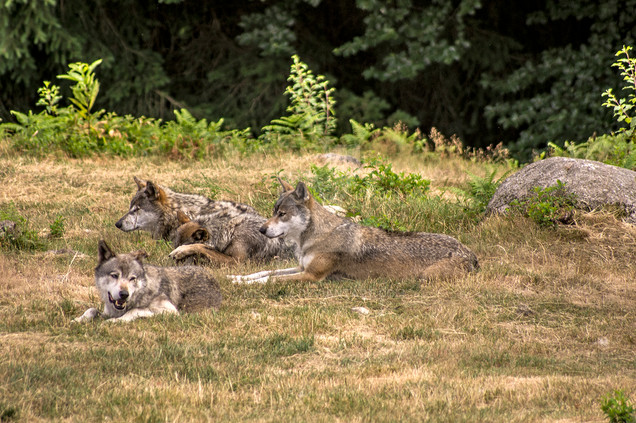 "Wildpark Eekholt"von Links nach Rechts: Wölfin Lena, Wolf Janosh & Alexander