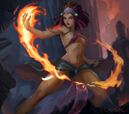 not sure what shes suppose to be, perhaps some sort of fire mage ?Β