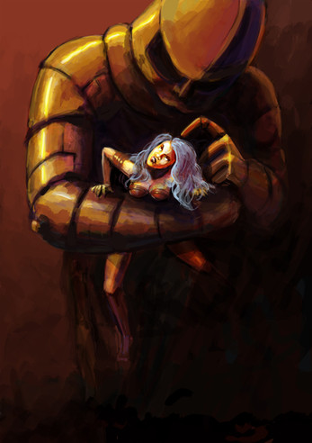 Meet Barbarella. The sexiest woman of the future.The main reference for this work was a low resolution still from the end of movie, in which the blind angel Pygar flies away with Barbarella. Barbarella's face however is based on a still from the scene in which the Concierge has put her in the Excessive Machine. I am quite happy with the way her expression has turned out.