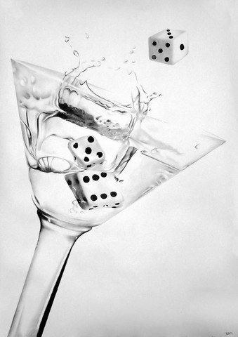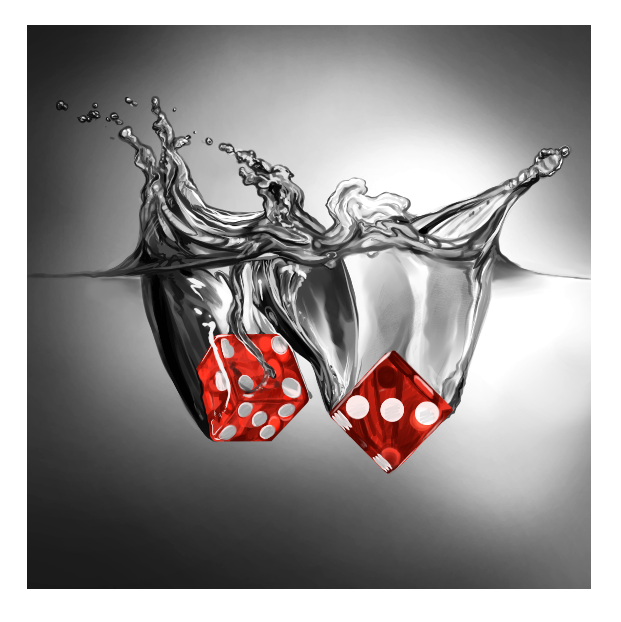 For a minute there I actually thought it was some kind of photo but when I looked closely I realised it wasn't; it's a drawing. This is really impressively drawn and the water effects (e.g. the ripples and how the water is dripping off the dice) is so fantastic. I can tell you're talented with capturing details well