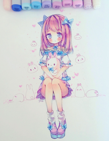 I love the way you blend the pinks and blues together. Also the way you ink the outline to make it look "faded" is genius. I love your work, I'm a fan. :3