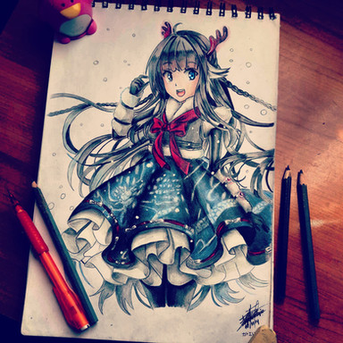 *tries harder to come up with titles for my art* ;_;Used: Copic Markers, Copic Multiliner, Micron Pigment Liner, moleskine paper, White gelpen