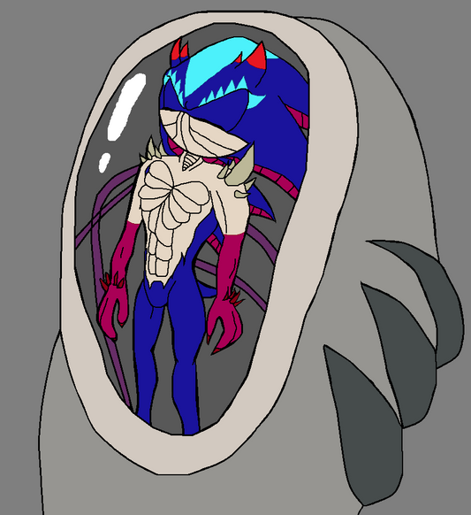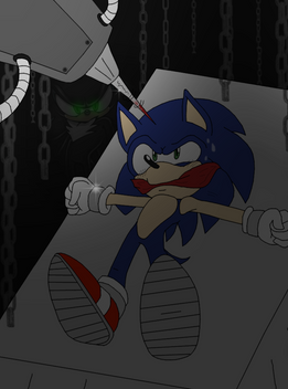It's pretty nice coloring. Sonic is in a well done position. I like how his arms are crossed across his folded legs. Also, you chose a good background to use, but the foreground doesn't quite match. Compared to the background, the foreground has some lack of detail. The machine that Sonic is in is missing some shading and toning. Sonic himself has some good detail, but there was so much more that could have been done, like there could have been some shading work done between his quills as well.