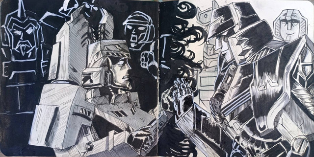 180sx and Galant 8I wanted to draw them brofist, as the agreement of working together to join the Decepticons team Flashpoint, that's how Arterish would look in RWD look (that comic panel is before he's RWD converted but well i forget about that)